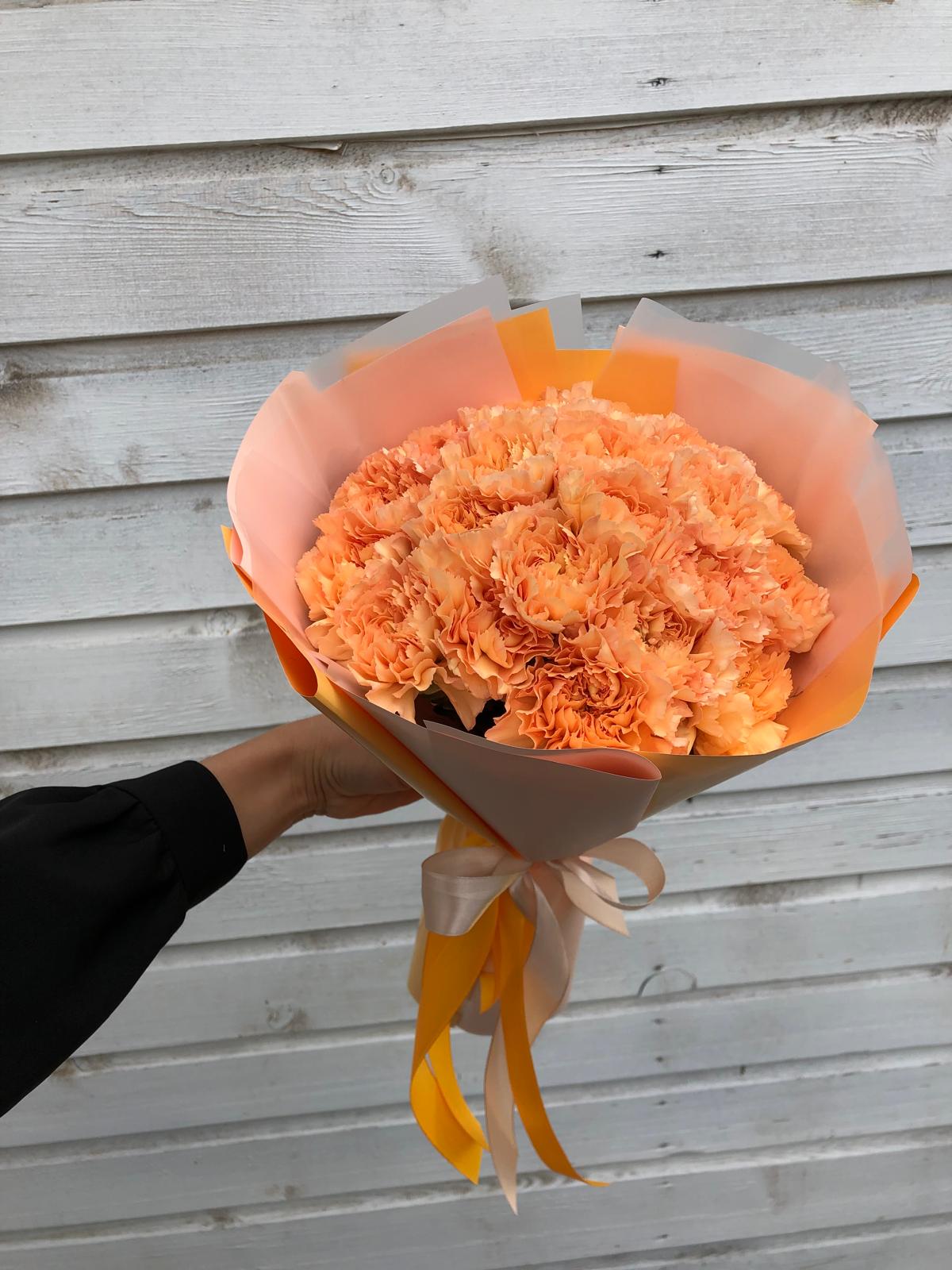 Są symbolem wdzięczności, podziwu i szacunku. W naszej kompozycji królują świeże, jednobarwne goździki, starannie ułożone i zapakowane w elegancką oprawę florystyczną.